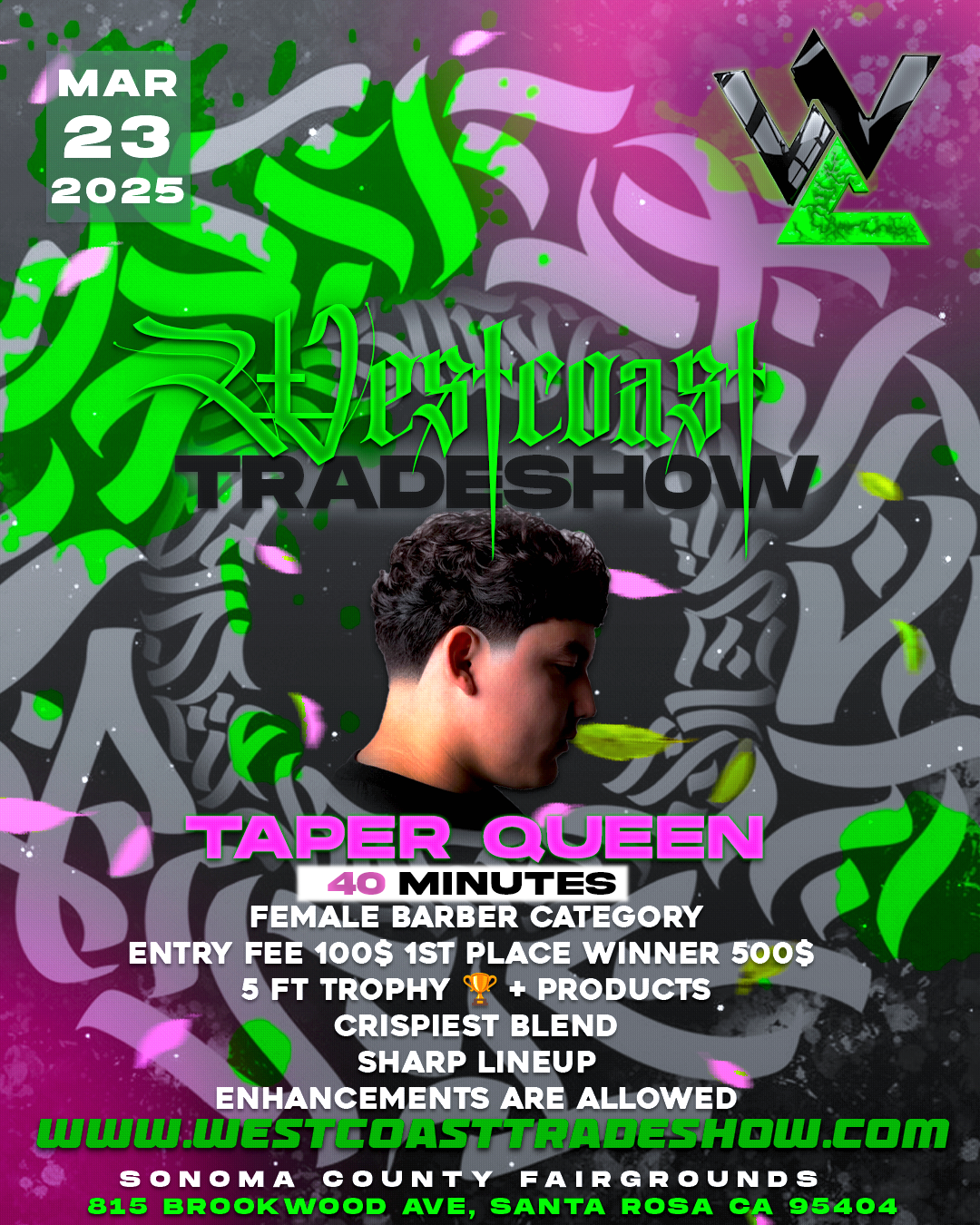 NOTE: Points will be deducted if you are not fully prepared. ***This purchase admits only one Female barber and one model on the day of the competition for Taper Queen . All other tickets are sold separately.*** ***Non Refundable****